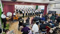 去る11月20日(木)文化祭の代休日に南高からほど近い長崎特別支援学校へ交流演奏会に行ってきました。 毎年、恒例の行事でもあるため部員たちが事前に手作りしたおもちゃの楽器をお届けし、当日は児童・生徒の皆さんも一緒に音を出してもらっています。 最後はみんなで吹奏楽伴奏に合わせて特別支援学校の校歌を歌いました。