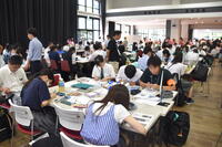 大会では年間紙面審査賞の結果発表・表彰式、参加校の新聞の展示、「交流新聞作り」(生徒研修会)などが行われました。「交流新聞作り」は異なる都道府県どうしの生徒6人からなる取材班が、香川県の地場産業の事業所や地域の歴史・文化について取材し、時間と勝負しながら手書きの新聞を作成。参加した生徒たちは新聞作成を通じて編集技術を学びました。