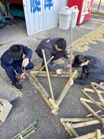 午後からは、学んだ技術を生かして実践を行うとともに、竹魚礁用の竹もたくさん切っていただきました。最後は、現地で初めてお会いした南高の大先輩のトラックで、大量の竹を南高まで運んでいただきました。大先輩、本当にありがとうございました!今回、初参加の生徒も「楽しかったです!」「勉強になりました。」と、前向きな感想ばかりでした。
